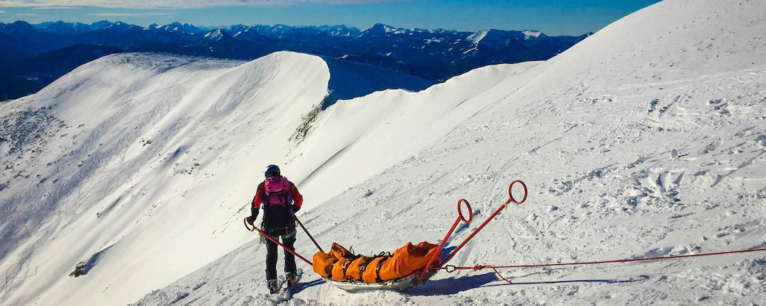 Ziel wird es sein, nach einer fiktiven Alarmierung den Verunfallten mittels Akja Transport und Seilsicherung von Gipfelnähe ins Tal zu transportieren. Doch zuerst erfolgt die wichtige & intensive technischen Schulung zu den Themen Lawinenkunde und Einsatzplanung etc.).